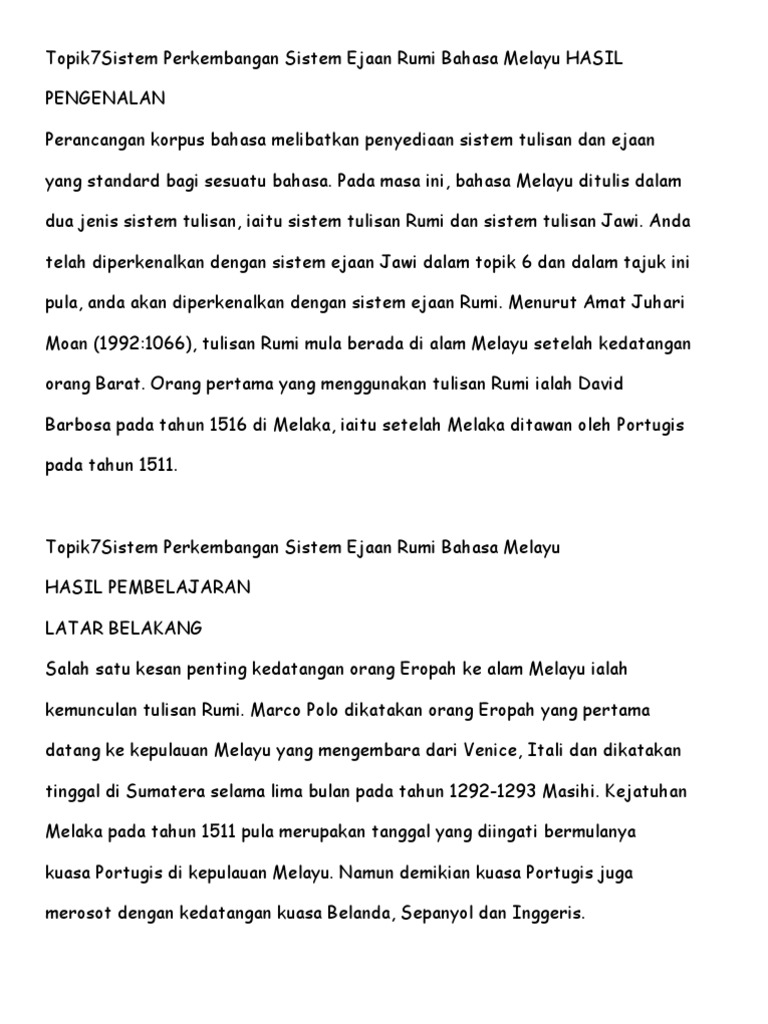 Bahasa Melayu Moden Konsep Bahasa Melayu Moden Dan Perkembangan Sistem Tulisan Dan Ejaan
