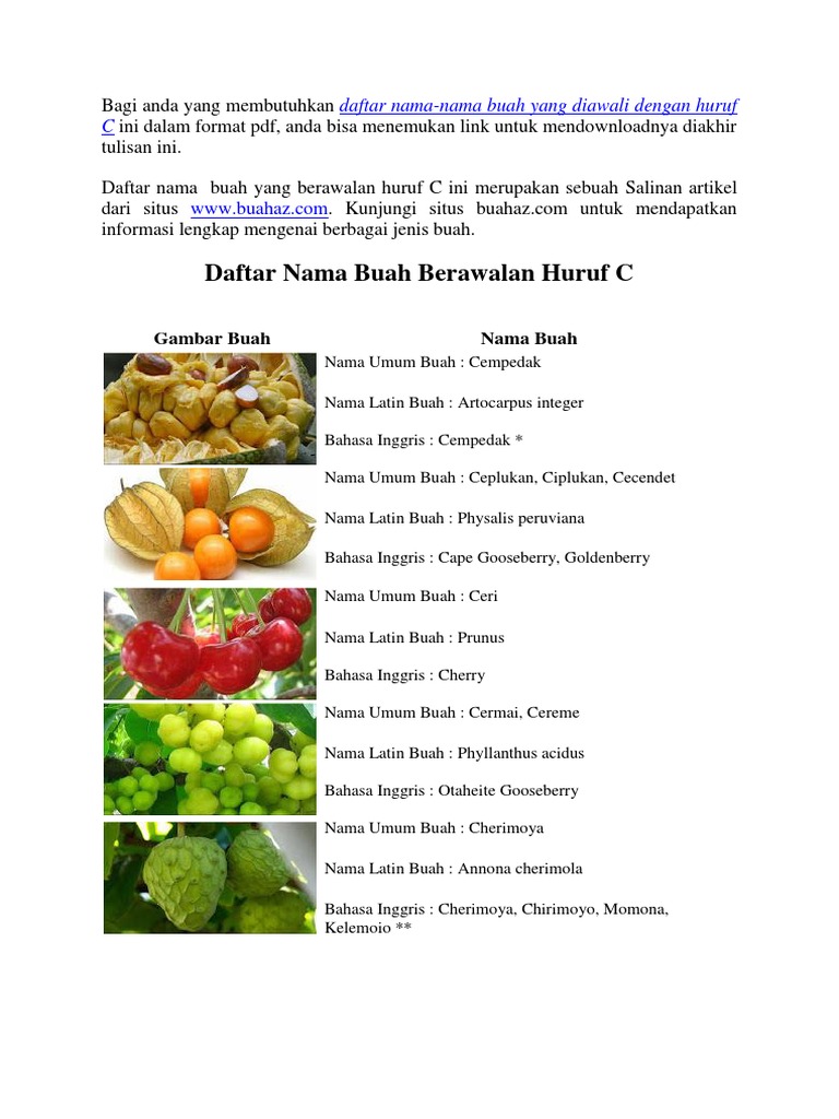Nama Buah Buahan Dari A Sampai Z Www Buahaz Com