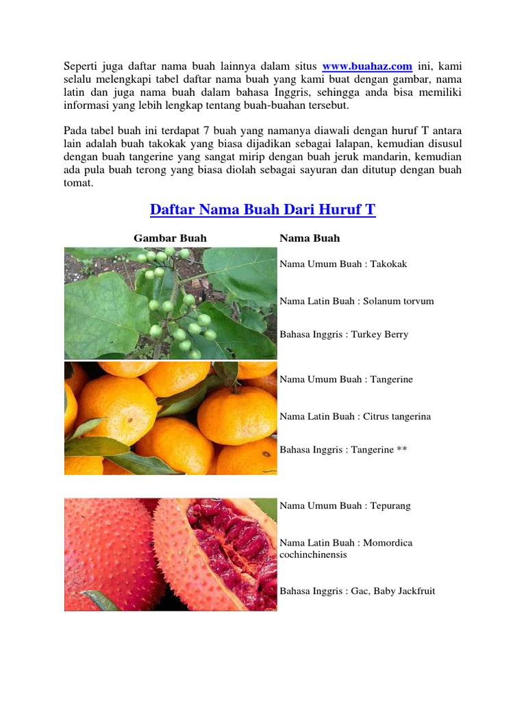 Nama Buah Dari Huruf T Youtube